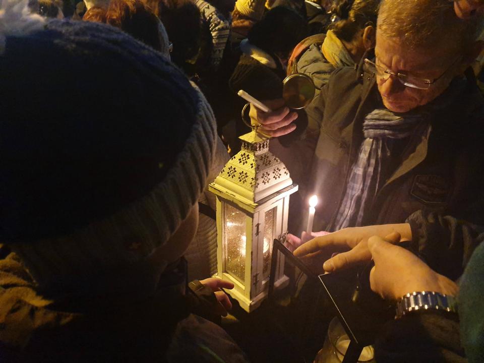 Am Sonntagnachmittag (15.12.) trafen wir uns, um gemeinsam nach Zürich zu gehen und dort das Friedenslicht in Empfang zu nehmen. Als wir in Zürich angekommen waren, schlenderten wir wie üblich kurz durch den Weihnachtsmarkt. Danach machten wir uns auf den Weg zum Bürkliplatz, wo das Friedenslicht mit dem Schiff ankam. Nachdem die grosse Feuersäule angezündet war, wurde das Licht weitergegeben. Mit grosser Freude nahmen auch wir das Licht entgehen. Um uns nach dem langen Warten wieder ein bisschen aufzuwärmen, genossen wir noch einen Glühwein bzw. einen Punsch. Danach machten wir uns auf den Rückweg und brachten das Friedenslicht nach Hause und in die beiden Kirchen Aadorf und Tänikon. Das Friedenslicht ist somit ab jetzt in beiden Kirchen abholbereit.