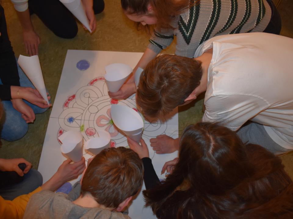Das Wochenende stand unter dem Thema „An die Grenzen gehen“. Am Freitagabend beim Mandala gestalten mit Sand – in Stille, ohne zu schwatzen, kamen bereits einige an ihre Grenzen. Den Samstag starteten wir mit einem eindrücklichen Film „Sein letztes Rennen“. Diese Geschichte zeigte uns auf, dass wer aufgibt, schon verloren hat. Der Aufstieg nach Gamplüt am Nachmittag mit Schneeschuhen an den Füssen war ebenfalls eine Grenzerfahrung. Umso mehr erfreute sich die Gruppe am Ziel an der herrlichen Aussicht und genoss die rasante Schlittenabfahrt ins Tal.