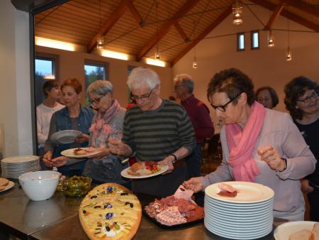 warteten schön gedeckte Tische im Pfarreizentrum auf die Wanderschar. Beim gemütlichen zusammensitzen bei Speis und Trank klang der Abend in froher Runde aus.