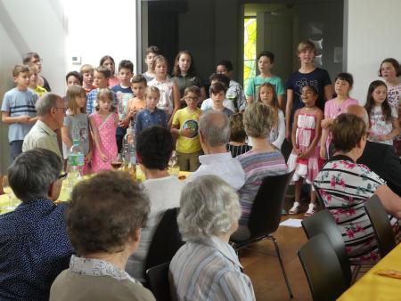 An schön geschmückter Tafel durften die Mitglieder / Mitgliederinnen des Alexanderclubs ein feines kaltes Buffet geniessen. Anschliessend erfreute uns das Duo Stäheli / Strupler mit zwei Sketches. Inzwischen wurde das Dessertbuffet, das keine Wünsche offenliess, angerichtet. Zum krönenden Abschluss erfreuten 32 Schulkinder mit fröhlichen und lustigen Liedern die Alexanderschar.